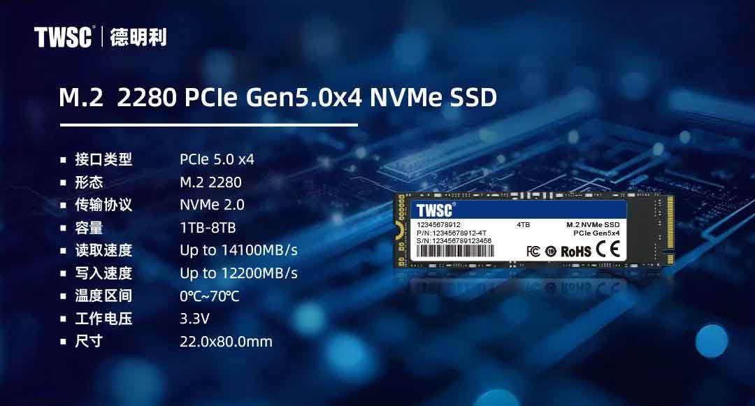 在追求極致的高性能計算、沉浸式游戲、高效云服務(wù)和創(chuàng)意內(nèi)容制作場景中,德明利M.2 2280 PCle Gen5.0x4 NVMe SSD,設(shè)備借助PCIe 5.0接口的強勁驅(qū)動,以8通道主控和外置DRAM的配合,實現(xiàn)接近15GB/s的極速讀取,NVMe 2.0協(xié)議的引入,以及SLC緩存技術(shù)的應(yīng)用,確保設(shè)備處理高分辨率圖形和復(fù)雜場景時,增強玩家的沉浸式體驗,同時保持設(shè)備的便攜性和電池續(xù)航。